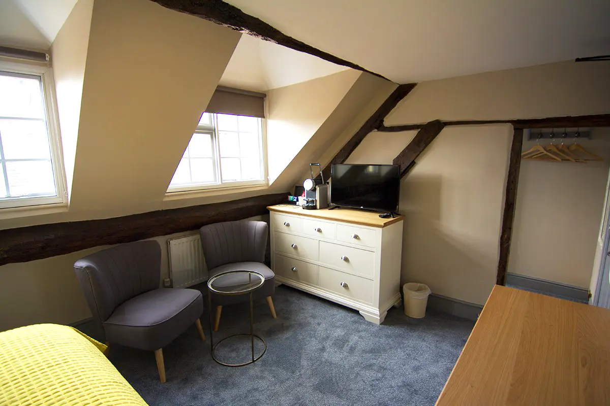 Room 3 is a cosy and characterful king room, perfect for a relaxing stay. Featuring beautiful original beams that add charm and warmth, this room offers a comfortable retreat at the end of the day.