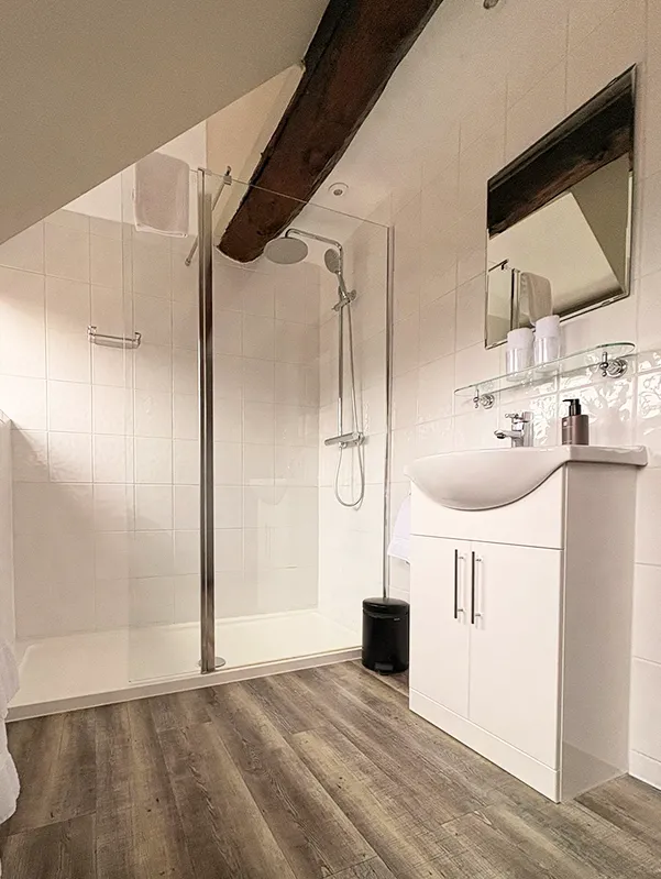 The modern ensuite shower room provides everything you need for a refreshing start or a restful wind-down. Ideal for guests who appreciate comfort, character and a snug, welcoming atmosphere.